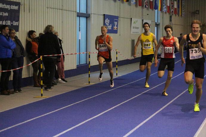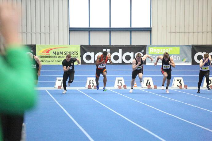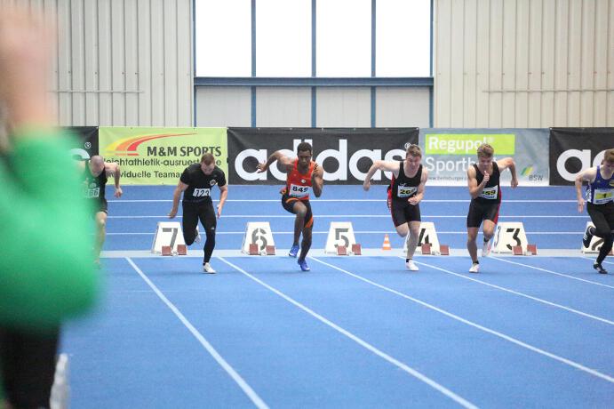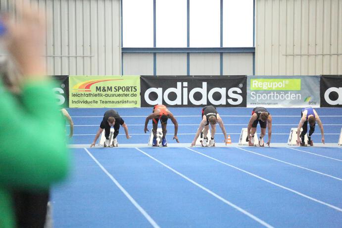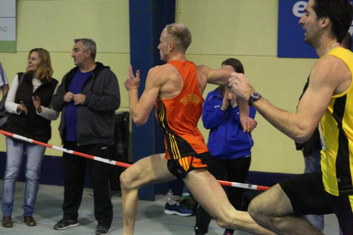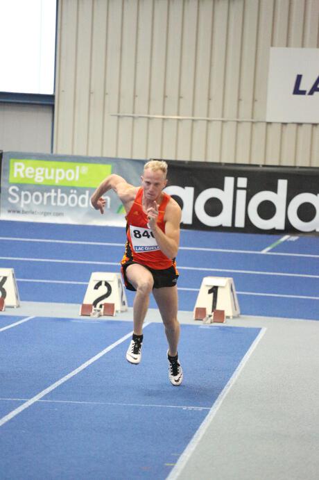 „Was, ich bin Dritter?“ Die Überraschung war Raffieu im Gesicht anzusehen, als er bei der Siegerehrung als Drittplatzierter aufgerufen wurde. Eigentlich hatte der 18-jährige Schüler nach seinem 150m-Lauf nicht damit gerechnet, auf das Podest zu dürfen, denn mit seiner Zeit von 17,09 Sekunden waren weder er noch seine Trainerin Conny so recht zufrieden. „Wir hatten uns als Ziel eine Zeit von unter 17 Sekunden vorgenommen“, so die Penzberger Trainerin. Umso glücklicher waren beide, dass sich Raffieu am Ende des Sprint-Dreikampfs, bestehend aus 60m, 30m fliegend und 150m, eine Medaille umhängen durfte. Begonnen hatte der Dreikampf mit den 60 Metern, wobei er mit 7,19 Sekunden deutlich über seiner Bestzeit blieb. Trotzdem war er damit der viertschnellste Läufer. Über 30m fliegend stoppten die Uhren bei seinem ersten von zwei Versuchen nach 2,93 Sekunden, die drittbeste Leistung in der Leichtathletikhalle des LAC Quelle Fürth. 30m fliegend bedeutet, dass die Teilnehmer nach 20 - 30 Metern Anlauf mit voller Geschwindigkeit durch eine Lichtschranke laufen, die die Zeit auslöst. Eine weitere Lichtschranke, die 30 Meter hinter der ersten Lichtschranke steht, stoppt dann die Zeit für diesen 30m-Abschnitt. Nach diesen beiden Disziplinen lag er zeitgleich mit zwei anderen Athleten auf dem vierten Rang, musste also über 150m eine gute Leistung zeigen. Nach einem guten Start und schnellen ersten 50 Metern hatte er Probleme mit der engen Kurve auf der 200m-Rundbahn, wodurch er wertvolle Zeit verlor. Trotzdem steigerte er seine Bestleistung um 0,40 Sekunden und musste sich in der Endabrechnung nur Moritz Hecht (LG Forchheim) und Felix Naß (TSV Crailsheim) geschlagen geben. Ebenfalls im Sprint-Dreikampf am Start war Andreas, der sich aber zwischen den 30m fliegend und den 150m der Konkurrenz über 600m stellte. Für die drei Runden benötigte er nur 1:23,68 Minuten. Nach der ersten Runde lag der 23-jährige Sindelsdorfer noch auf Platz 4, schob sich aber nach 300 Metern auf Platz drei nach vorne. Nun machte er Meter um Meter auf die beiden führenden Läufer, Fabian Spinrath (LAV Bayer Uerdingen / Dormagen) und Steffen Co (TG Viktoria Augsburg), gut und konnte sich bis ins Ziel noch auf zwei Meter herankämpfen. „Es ging mir besser als erwartet, mit so einer schnellen Zeit hätte ich nicht gerechnet“, so der 400m Hürden – Spezialist, der so nebenbei über 30m fliegend mit 3,20 Sekunden eine neue Bestzeit aufgestellt hatte. Natürlich fehlten ihm bei den abschließenden 150m ein wenig die Kräfte, weshalb er mit 18,10 Sekunden deutlich über seiner Bestzeit blieb und im Gesamtklassement den 30.Platz belegte. Platz 23 ging im Sprint-Dreikampf an Matthias, der mit 3,16 Sekunden über 30m fliegend, 7,61 Sekunden über 60m und 17,63 Sekunden über 150m drei solide Leistungen zeigte. Seinem ersten richtigen Sprint-Wettkampf seiner Karriere stellte sich Michael, der Rang 42 belegte.