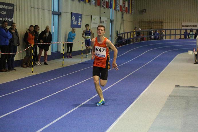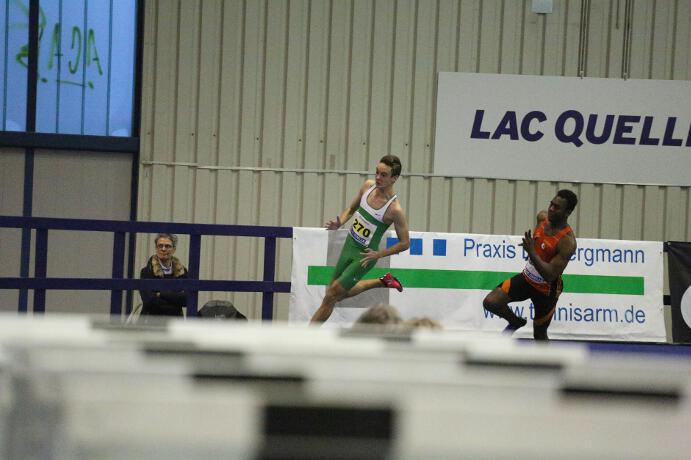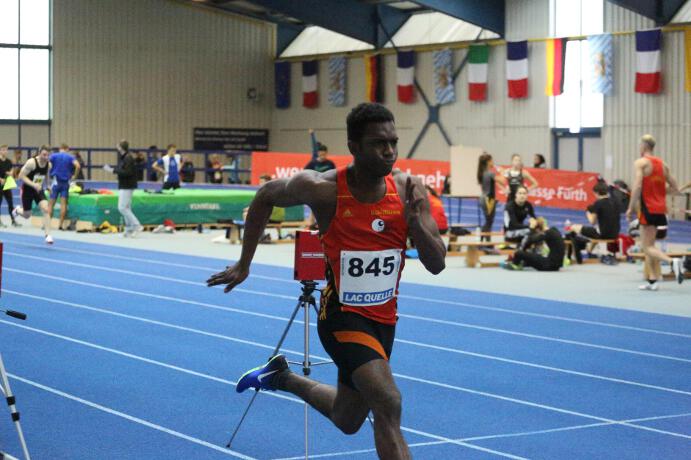 FÜRTH / 02.12.2017 - Beim Sprintcup des LAC Quelle Fürth hat Raffieu die Bronzemedaille im Sprint-Dreikampf gewonnen. In dem 60-köpfigen Teilnehmerfeld der Männer überraschte der 18-jährige Penzberger, wobei er über 150m (17,09 Sekunden) und 30m fliegend (2,93 Sekunden) neue Bestzeiten aufstellte. Ebenfalls eine Bronzemedaille und Bestleistung gab es für Andreas über 600m, dem mit 1:23,68 Minuten nur 0,37 Sekunden zum Sieg fehlten.