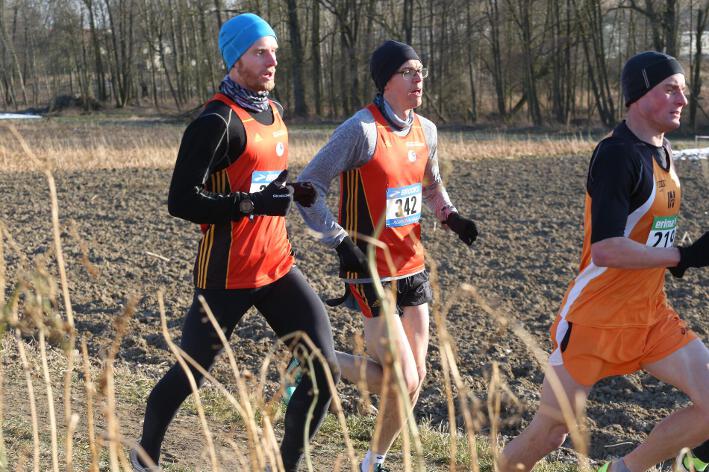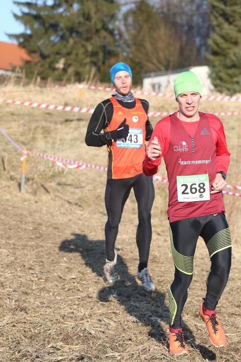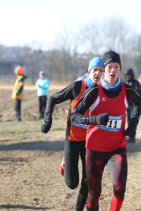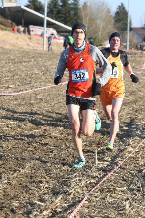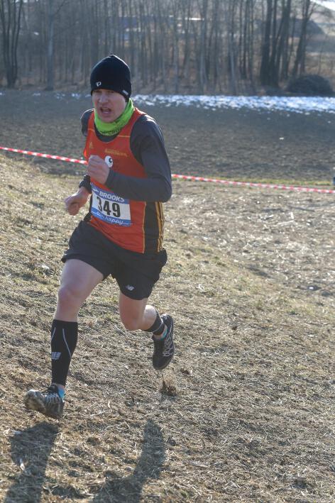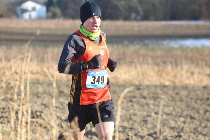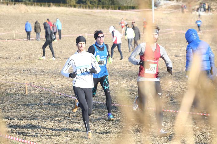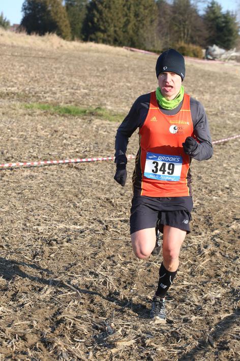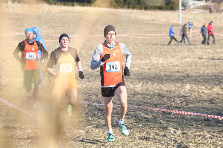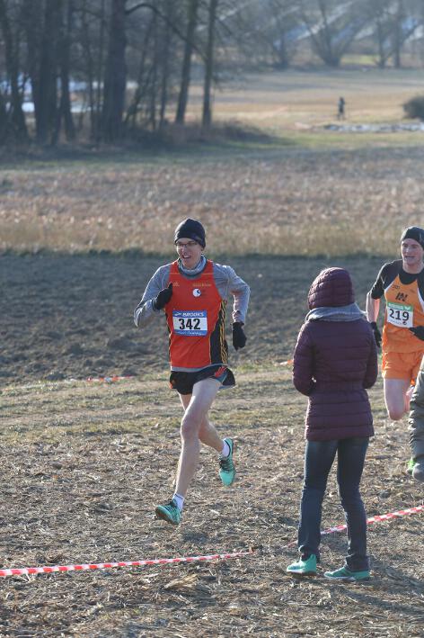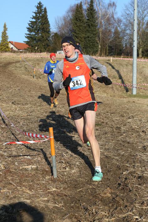 Deutlich mehr Erfahrung hat da schon Nick aufzuweisen, der sich aber mindestens genauso über seine Goldmedaille in der Altersklasse U20 freute wie seine Vereinskameradinnen. Mit nach oben gestreckten Armen überquerte er nach 10:50 Minuten und 3.600 Metern die Ziellinie auf dem gefrorenen Wiesenboden. In den ersten beiden von drei Runden hatte sich der 18-jährige Penzberger zunächst in einer fünfköpfigen Spitzengruppe etwas versteckt, übernahm dann aber zu Beginn der dritten Runde die Führung. Mit einer Tempoverschärfung sprengte er die Gruppe und konnte sofort zwei seiner Konkurrenten abschütteln. Auf dem leicht bergab führenden Weg durch einen halbgefroren Acker konnten ihm nur noch die beiden U23-Athleten Niklas Buchholz (LSC Höchstadt) und Gabriel Allgayer (LG Stadtwerke München) folgen. Am tiefsten Punkt der Strecke, wo der eisige Wind den Athleten kontinuierlich ins Gesicht blies, konnte er sich dann von Allgayer lösen, nur noch der deutsche 2.000m-Hindernismeister Buchholz hielt Kontakt. Am letzten kurzen Anstieg, knapp 100 Meter vor dem Ziel, zog dann Buchholz vorbei und erreichte wenige Meter vor Nick als Sieger der Altersklasse U23 das Ziel. Dies war ihm allerdings egal, schließlich hatte er alle seine Konkurrenten der U20 deutlich hinter sich gelassen. Nicht ganz so zufrieden war hingegen Lucas, der im selben Lauf lange Zeit nur 100 Meter hinter seinem Vereinskameraden lief, doch auf der letzten Runde ging dem 20-jährigen Penzberger die Kraft aus und er fiel noch deutlich zurück. So belegte er in der Altersklasse U23 mit 11:44 Minuten Rang 9. Ebenfalls im gleichen Lauf war Marvin am Start, der in der Altersklasse U18 eine ausgezeichnete Leistung zeigte und mit 12:29 Minuten Zwölfter wurde.