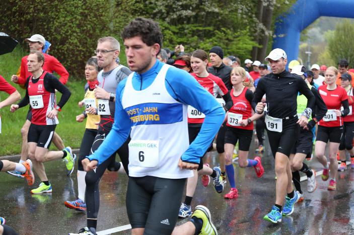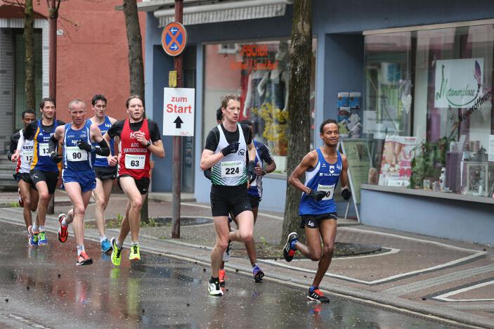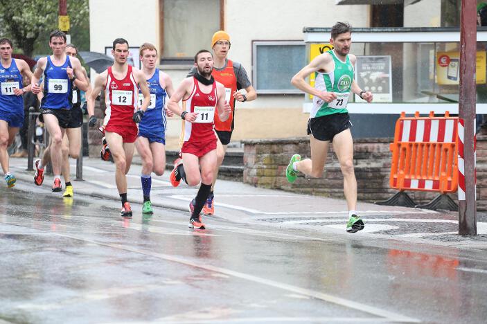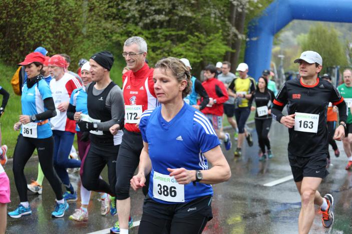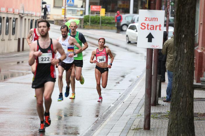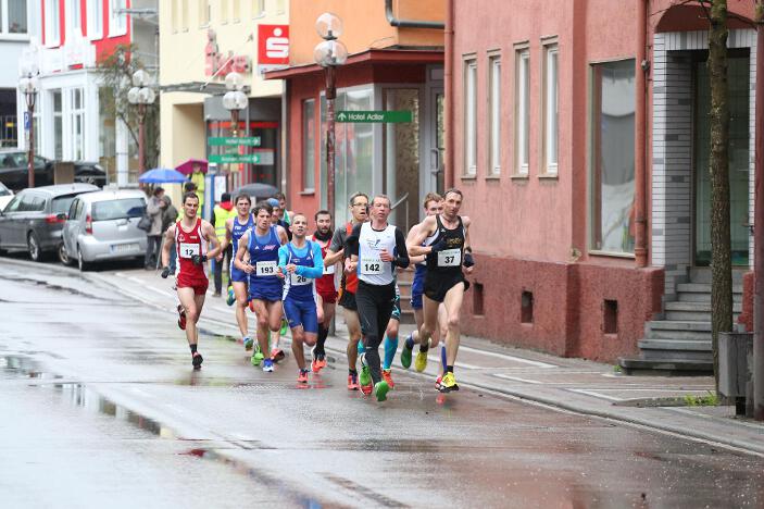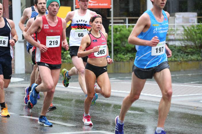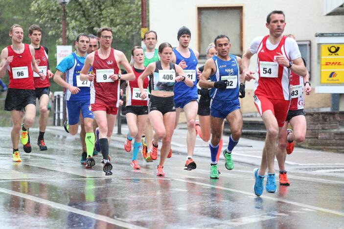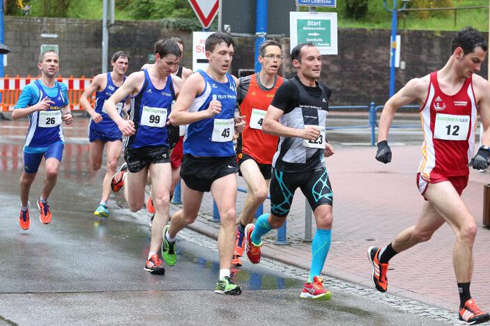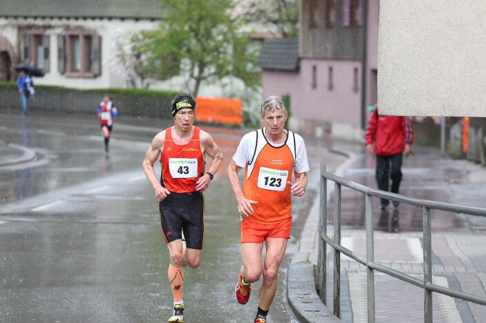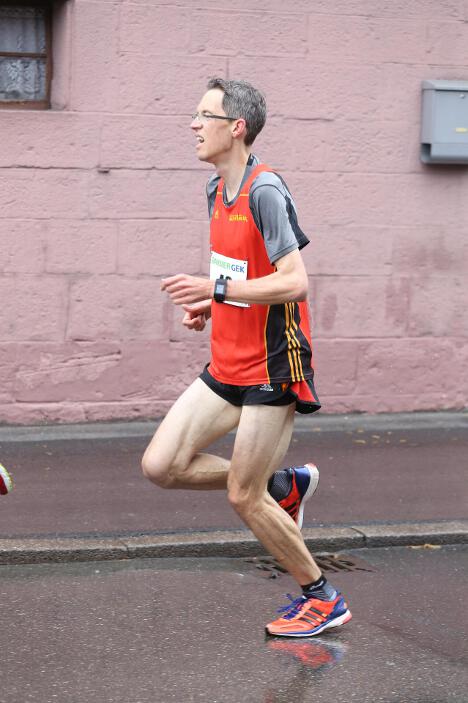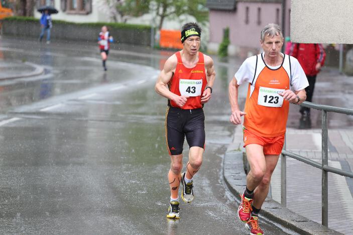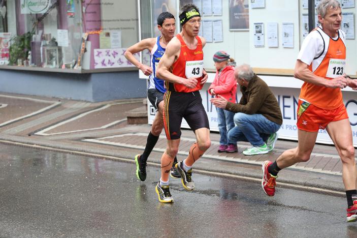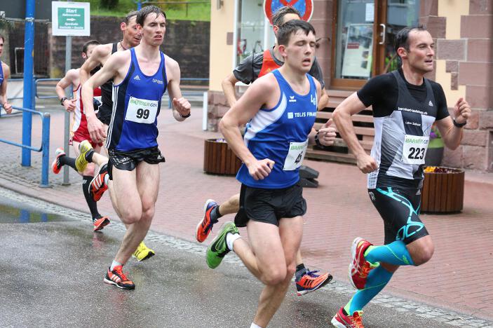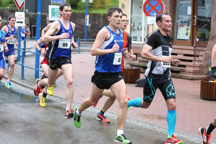 Ebenfalls sehr zufrieden mit seinem Abschneiden in Bad Liebenzell war sein Vereinskollege und Trainer Markus, der trotz des sehr schlechten Wetters eine neue Bestzeit aufstellen konnte. Der 36-jährige Realschullehrer hielt sich das ganze Rennen über in einer meist 6 – 8-köpfigen Läufergruppe auf, wobei er meist Schulter an Schulter mit dem späteren Zweitplatzierten in seiner Altersklasse, Johannes Hillebrand (LG Stadtwerke München), lief. Erst auf den letzten drei Kilometer musste er den Münchner davonziehen lassen. Gold ging an den überragenden Vitaliy Rybak (Ayyo-Team Essen), der mit 1:05:51 Stunden Vierter in der Gesamtwertung wurde. Dabei hatte Markus fast dieselben Probleme wie Hugo: „Vor allem bei den Bergabpassagen haben sich immer meine Oberschenkel-Rückseiten aufgrund der Kälte und Nässe verkrampft. Zudem waren meine Hände und Füße eiskalt, ich habe sie während des Rennens nicht mehr gespürt. Außerdem waren ab der Hälfte des Rennens meine Oberschenkel und Waden so kalt, dass ich teilweise Probleme hatte, meine Schritte zu kontrollieren“, so Markus über die Bedingungen. „Auf den letzten drei Kilometer wurden meine Beine dann ziemlich wacklig und ich war froh, das Ziel noch unter 1:10 Stunden erreicht zu haben.“ Trotz dieser Probleme blieb er fast eine Minute unter seiner alten Bestzeit aus dem Vorjahr. In Bad Liebenzell hatten viele Läuferinnen und Läufer mit den Wetterbedingungen zu kämpfen, sodass nur wenige Läufer an ihre Bestzeiten herankamen. Auch Sieger Mitku Seboka (LAC Quelle Fürth / 1:05:03 Stunden) oder der Bronzemedaillengewinner Jonas Koller (LG Telis Finanz Regensburg / 1:05:23 Std.) klagten nach dem Rennen über die alles andere als guten äußeren Umstände.