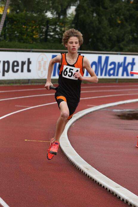 Riesengroß war auch die Freude bei Julian, Lucas und Nick. Zwar hatte man sich im Vorfeld durchaus Hoffnungen auf eine Medaille und die Qualifikation für die Deutschen Jugendmeisterschaften gemacht, doch viel höher als 50:50 hatte Melanie die Chancen nicht beziffert. Aber Startläufer Julian vom TuS Geretsried, der mit den Penzbergern die Startgemeinschaft Isar Loisach bildet, wischte alle Zweifel vom Tisch, als er 250 Meter vor dem ersten Staffelwechsel an seinen Konkurrenten quasi vorbeiflog und nach sensationellen 2:38 Minuten als Erster das Staffelholz an den 18-jährigen Lucas übergab. Dieser legte die erste Runden in pfeilschnellen 60 Sekunden zurück und behauptete lange Zeit die Führung gegen den von hinten drängelnden Passauer. Erst auf den letzten 200 Metern musste er seinen direkten Konkurrenten ziehen lassen und drückte nach 2:39 Minuten Nick das Staffelholz in die Hand. Dieser versuchte zwar sofort die Lücke von 10 Metern zu schließen, doch diese wurde bis ins Ziel nicht kleiner. Trotzdem lief der 16-jährige Gymnasiast immer voll am Limit, schließlich wollte er unbedingt das Ziel vor Ablauf der Qualifikationsnorm (8:02,20 Min.) erreichen. Im Ziel angekommen, war alle Beteiligten sofort klar, dass es gereicht hatte und alle fielen sich in die Arme.
