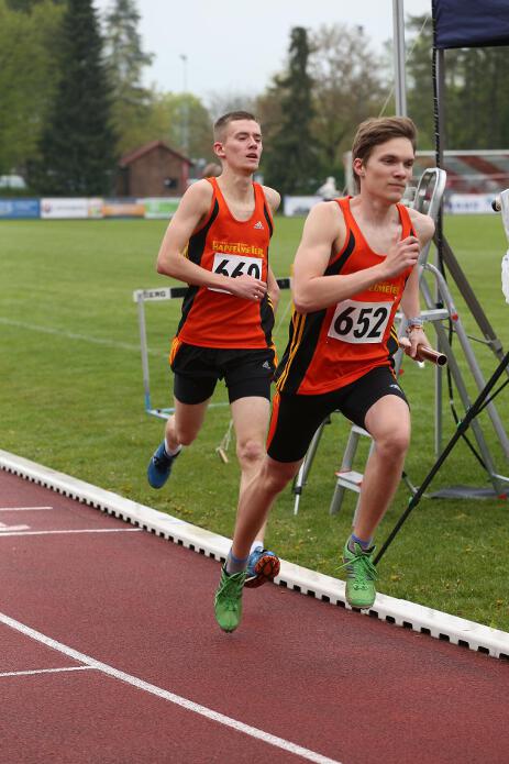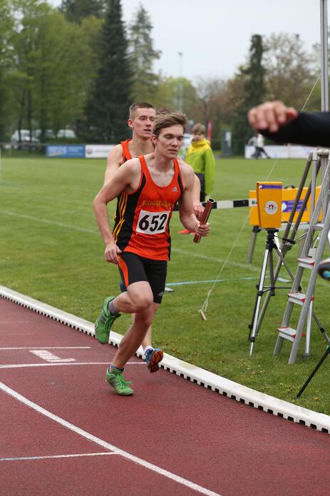 GILCHING / 01.05.2016 - Bei den bayerischen Langstaffelmeisterschaften in Gilching gingen sowohl die Titel über 4 x 400m als auch über 3 x 1.000m der Altersklasse U23 an unsere Läufer, wobei Andi, Michi und Marinus gleich in beiden Staffeln vertreten waren. Über 4 x 400m erhielten die drei Verstärkung durch Maxi, der trotz Abistress als Startläufer eine neue Bestzeit lief. Die 3 x 1.000m-Staffel der Altersklasse U20 wurde für einen sensationellen Auftritt mit Silber hinter dem 1.FC Passau und der Qualifikation für die Deutschen Meisterschaften belohnt. Mit 7:57,80 Minuten blieb sie knapp vier Sekunden unter der geforderten Qualifikationsnorm, wobei sowohl Startläufer Julian, als auch Lucas und Nick jeweils Bestzeit liefen.