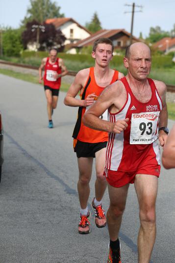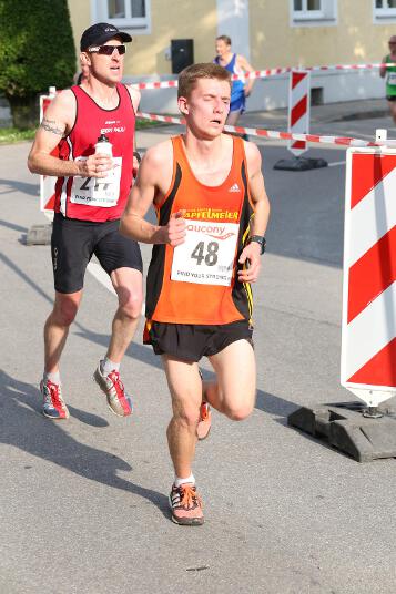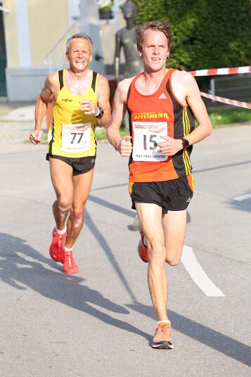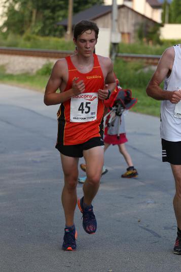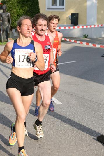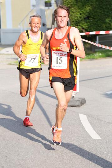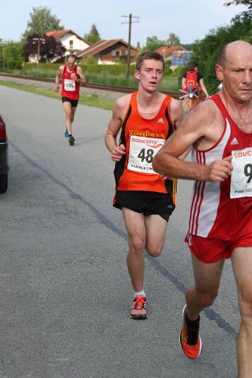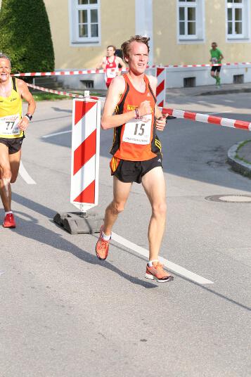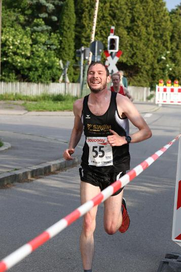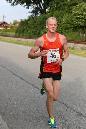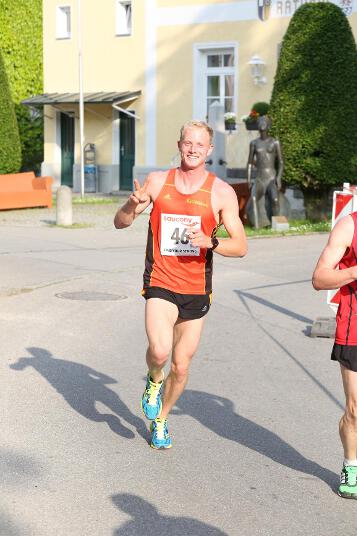 Sehr konstant gestaltete auch Andi sein Rennen, der den Lauf in Ruhstorf als Trainingseinheit benutzte. Sein Trainer Markus hatte ihm die Aufgabe gestellt, nicht schneller als 40 Minuten zu laufen, da er sich für sein 400m Hürden – Rennen nächste Woche in Regensburg schon sollte. Deshalb startete er in exakt 4:00 Minuten pro Kilometer. „Das Rennen an sich war wirklich locker. Hinten raus habe ich dann etwas beschleunigt. Dass ich aber damit eine Medaille gewinnen würde, hätte ich nie gedacht“, so der 21-jährige Sindelsdorfer. Als er dann bei der Siegerehrung der Altersklasse U23 als Drittplatzierter aufgerufen wurde, reagierte er zunächst nicht, da nicht nur er, sondern auch alle anderen Penzberger nicht damit gerechnet hatten. Letztendlich profitierte er davon, dass sich einige Läufer bei der Hitze übernommen hatten und das Rennen vorbeizeitig beenden mussten.