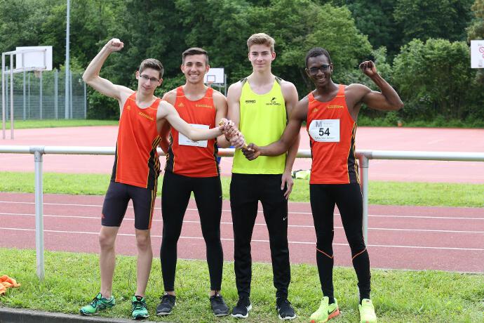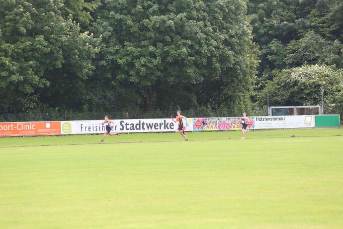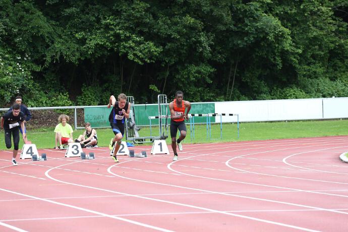 FREISING 11.06.2016 - In einem spannenden 100m-Finale hat sich Raffieu den Titel des oberbayerischen Meisters in der Altersklasse U18 gesichert. Mit 11,28 Sekunden setzte er sich hauchdünn gegen Alexander Spencer (LG Stadtwerke München) durch, der mit 11,30 Sekunden nur einen Wimpernschlag hinter Raffieu das Ziel erreichte. Nach 50 Metern lag der Penzberger noch knapp einen halben Meter vorne, doch dann kam der Münchner näher und setzte sich neben ihn. Doch als Raffieu dies bemerkte, konnte er noch einmal beschleunigen und freute sich im Ziel riesig darüber, zum ersten Mal Spencer geschlagen zu haben. Mit 11,28 Sekunden steigerte er seine Bestzeit und blieb damit bereits zum zweiten Mal an diesem Tag unter der DM-Norm. Bereits zuvor hatte er mit der 4 x 100m-Staffel der männlichen Jugend U18 souverän mit sehr schnellen 44,32 Sekunden gesiegt. Andreas, Luis, Albin und Raffieu blieben damit deutlich unter der Norm für die Deutschen Jugendmeisterschaften. Da Raffieu aber noch nicht bei Deutschen Meisterschaften startberechtigt ist, gilt die Zeit nicht als Qualifikationsleistung. Startläufer Andreas konnte gleich ein wenig auf die Konkurrenten gut machen und übergab an Luis. Der Läufer des TuS Geretsried konnte sofort einige Meter gut machen und übergab das Staffelholz mit einem ordentlichen Wechsel an Albin. Der 17-jährige Penzberger konnte in der Kurve den Vorsprung weiter ausbauen und übergab das Holz mit einem sicheren Wechsel auf Raffieu, der den Vorsprung noch einmal deutlich ausbauen konnte.