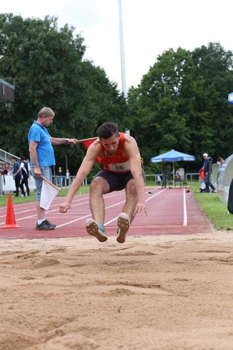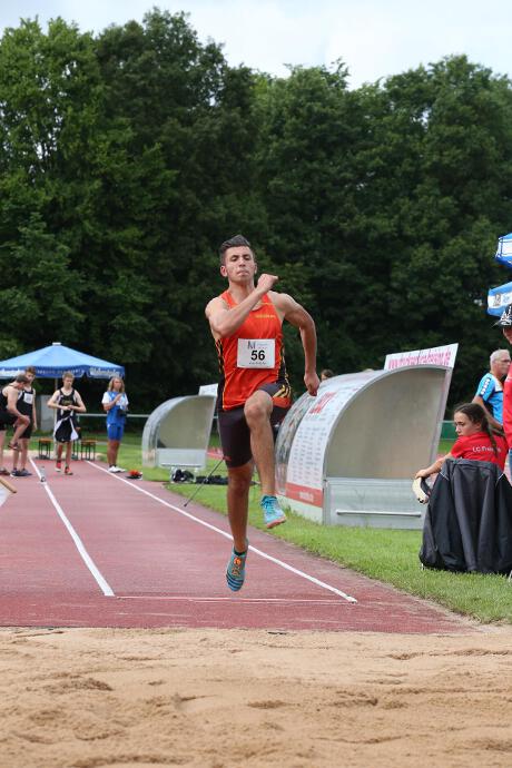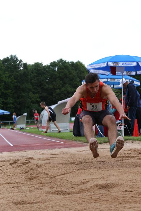 Zweimal Gold gab es in Freising auch für Albin, der seiner Favoritenrolle in Freising mehr als gerecht wurde. Mit 6,35m siegte er souverän und kam relativ nahe an seine Bestleistung aus der Vorwoche heran. Dieses Mal hatte er allerdings ein paar mehr Probleme mit dem Anlauf, sodass er nur zwei Versuche gut auf das Brett brachte. Im letzten Versuch übertrat er leider wenige Millimeter, denn dieser Sprung wäre wahrscheinlich sein bester Sprung des Tages gewesen.