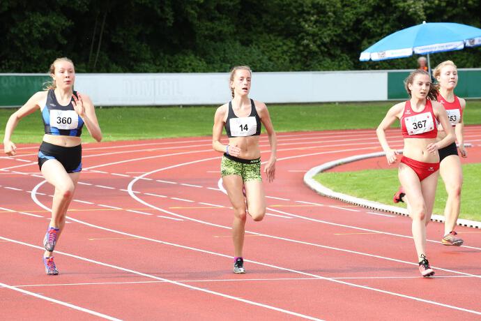 Nahezu ungläubig blickte Elli nach ihrem siegreichen Lauf über 800m nach dem Ziel auf die Uhr. Dort standen 2:19,00 Minuten, eine Zeit, die sie vor dem Rennen nie im Leben erwartet hätte. Freudestrahlend fiel sie allen anwesenden Penzberger um den Hals und konnte es immer noch nicht fassen. Mit 2:18,98 Minuten hatte sie uhre Bestzeit um fast fünf Sekunden verbessert und deutlich die vermeintliche Favoritin, Luca-Anna Liersch (LG Würm Athletik) geschlagen. Bis 600 Meter war sie hinter Liersch gelaufen - die Durchgangszeit nach 400 Metern war 68 Sekunden - und hatte diese dann kurz vor Beginn der Kurve überholt. Bis ins Ziel konnte sie dann ihren Vorsprung auf mehr als 30 Meter ausbauen.
