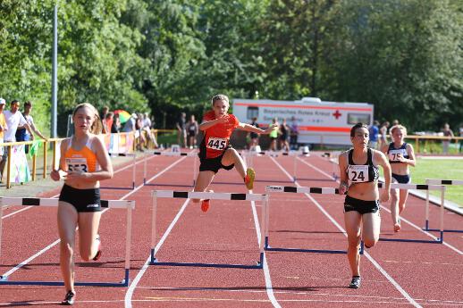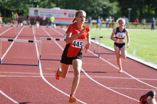 Ein direkter Vergleich mit ihrem Bruder ist natürlich für Michaela nicht wirklich fair, doch kann sie nach diesen Meisterschaften behaupten, dass ihre Bestzeit über 300m Hürden mit 48,00 Sekunden besser ist als die persönliche Bestleistung ihres älteren Bruders Andreas, denn dieser ist schließlich noch nie diese Strecke gelaufen. Ihre tolle Leistung wurde in Hösbach mit der Silbermedaille in der Altersklasse W15 belohnt. Mit 47,69 Sekunden ging der Sieg an Leonie Hirsch (TV 1861 Amberg), die bereits nach 50 Metern deutlich vor der 15-jährigen Sindelsdorferin lag. Dieser Vorsprung blieb bis auf die Zielgerade konstant, auf der Kölbl dann allerdings noch einmal deutlich aufholen konnte. Für Michaela war es, genauso wie für Luk, die erste Medaille bei einer bayerischen Meisterschaft.