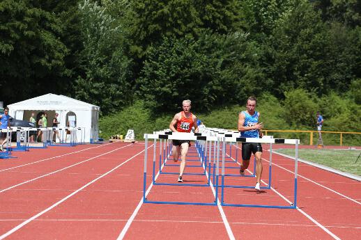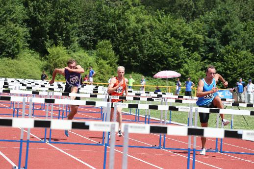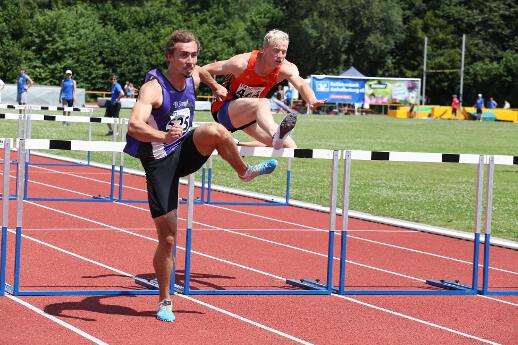 HÖSBACH / 09./10.07.2016 - Bei den bayerischen Meisterschaften in Hösbach hat Andreas souverän seinen Titel über 400m Hürden in der Altersklasse U23 aus dem Vorjahr verteidigt. Mit 54,07 Sekunden lief er die zweitschnellste Zeit seiner Karriere und hatte mehr als eine Sekunde Vorsprung auf Paul Bobinger (TSV 1860 München). Nach verhaltenem Start lag er im Finallauf nach 150 Metern zunächst auf dem letzten Platz. „Als dann Paul Bobinger an mir vorbeizog, ist mir erst richtig bewusst geworden, dass ich mich in einem Wettkampf befinde“, so der 21-jährige Sindelsdorfer. Erschrocken davon beschleunigte Kölbl und hatte nach 250 Metern die Führung übernommen. Auf der Zielgerade konnte er seinen Vorsprung immer weiter ausbauen und erreichte souverän als Sieger das Ziel. Im Ziel angekommen, begab er sich sofort zum Auslaufen, da er nicht einmal eine Stunde später über 800m antreten musste. Da er von seinem Hürdenlauf doch sehr erschöpft war, hatte er zunächst Zweifel, ob er überhaupt starten sollte. Doch er entschied sich für einen Start und zeigte als Vierter ein spannendes und hochklassiges Rennen, das er ganz knapp als Vierter beendete. „Leider habe ich auf den letzten Metern die Bronzemedaille verschenkt, da ich nicht bemerkt habe, dass von hinten noch ein Läufer kommt“, so Andreas. Dieser Läufer war Fabian Laukamp (LG Telis Finanz Regensburg), der mit 1:58,58 Minuten nur 0,06 Sekunden vor dem Penzberger das Team erreichte. Andi war nach 300 Metern zunächst Letzter, schob sich dann aber, da das Feld immer langsamer wurde, auf Platz eins nach vorne. Als dann nach 550 Metern die beiden späteren Sieger, Dario Tippmann (LAC Quelle Fürth) und Hannes Schifferegger (LG Stadtwerke München), vorbeizogen, konnte Andi sämtliche Angriffe der Konkurrenz abwehren. Dass er dann allerdings den Regensburger Laukamp übersah, ärgerte ihn maßlos. Da konnte auch die Bronzemedaille über 110m Hürden mit 15,97 Sekunden am Sonntag nicht viel ändern.