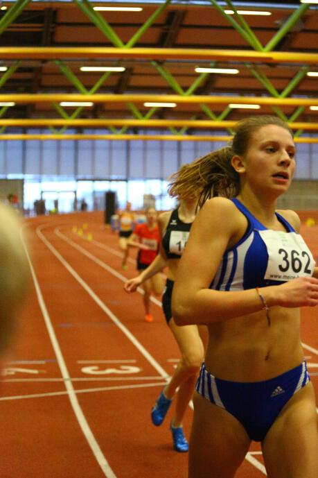 MÜNCHEN / 15.01.2017 - Elli hat bei den südbayerischen Hallenmeisterschaften in München den 2.Platz über 800m belegt. In der Altersklasse U18 musste sie sich nur Denise Jeschke (LG Stadtwerke München) geschlagen geben, die im Schlussspurt Elli keine Chance ließ. "Ich wusste, dass ich in der dritten Runde ein Lücke laufen muss, denn im Schlussspurt ist Denise eindeutig stärker als ich", so die 16-jährige Uffingerin zu ihrer Renneinteilung. Elli hatte nach 200 Metern die Führung übernommen und hielt das Tempo hoch. Doch vor der letzten Kurve zog die Stadtwerke-Athletin. "Mit der Zeit bin ich zwar nicht ganz zufrieden, aber für das erste Rennen nach den vielen eher langsameren Tempoläufen passt das schon", so Elli, die nächste Woche bei den bayerischen Meisterschaften 1.500m laufen wird.
