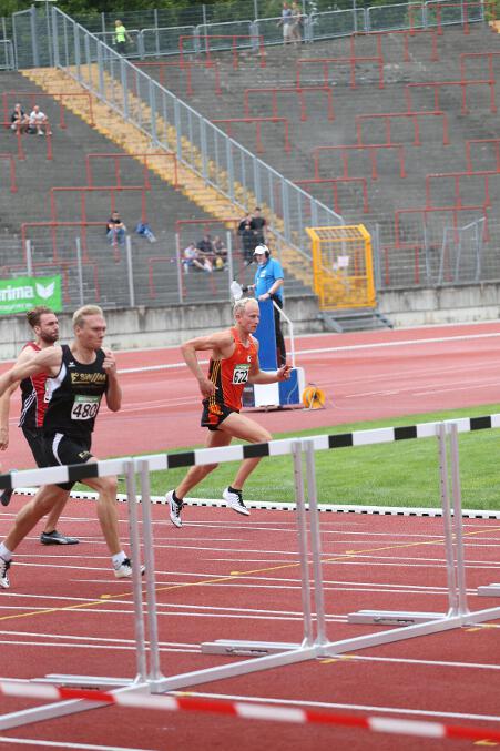 „Jetzt fühlen sich meine Beine eigentlich wieder ziemlich fit an“, so der Kommentar von Andreas nach seinem vierten und letzten Rennen im altehrwürdigen Rosenau-Stadion in Augsburg. Im 110m-Hürden-Finale der Männer hatte er soeben den 5.Platz mit 15,70 Sekunden belegt und sich über die 1,06 Meter hohen Hürden mehr als achtbar geschlagen. Fünf Stunden zuvor hatte er über 400m Hürden mit 54,44 Sekunden die Silbermedaille gewonnen, wobei er mit seinem Auftritt über die „nur“ 91 Zentimeter hohen Hürden nicht ganz zufrieden war: „Zwischen der sechsten und siebten Hürde habe ich aus irgendeinem Grund 16 Schritte gebraucht.“ Normalerweise braucht der 21-jährige Sindelsdorfer 14 oder 15 Schritte, kein Wunder also, dass er vor der siebten Hürde extrem bremsen musste. Vielleicht lag es noch an den etwas müden Beinen, denn am Vortag war er über 800m mit 1:56,05 Minuten Zehnter geworden.