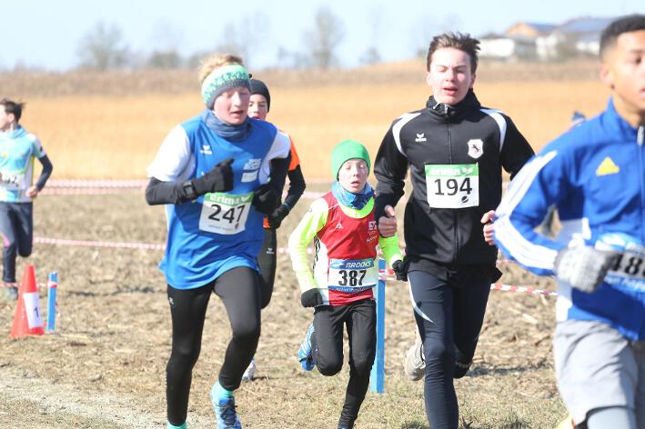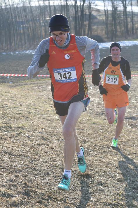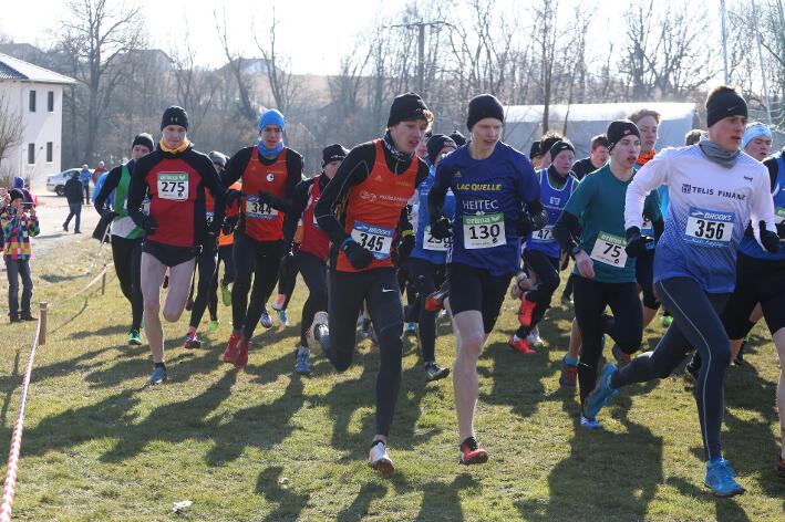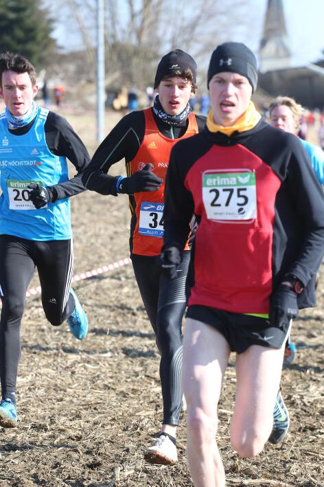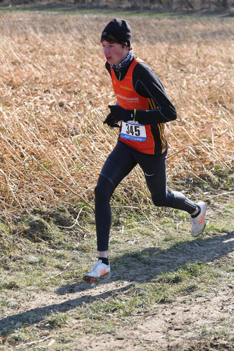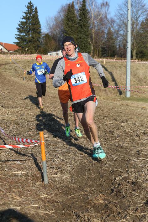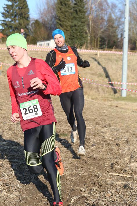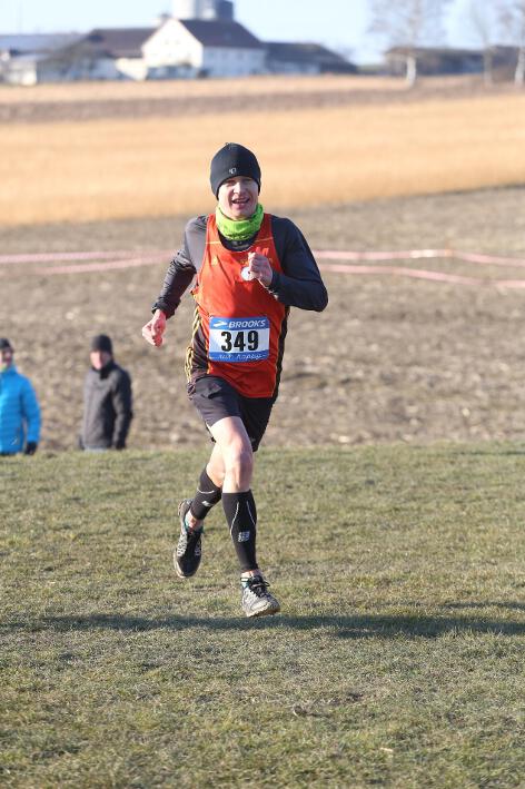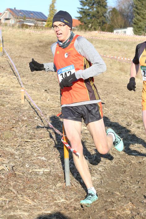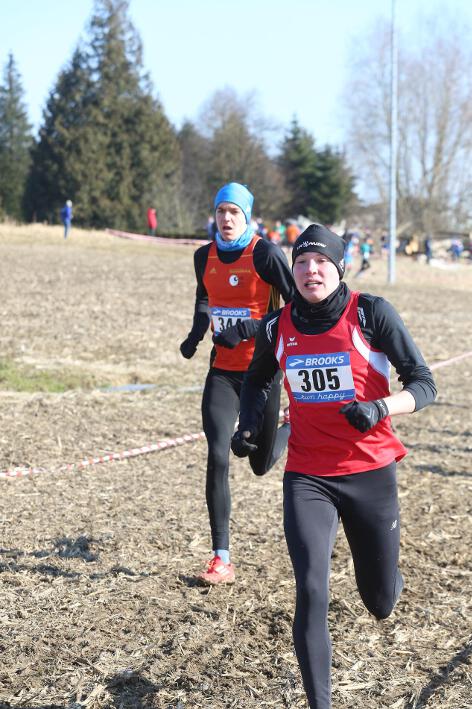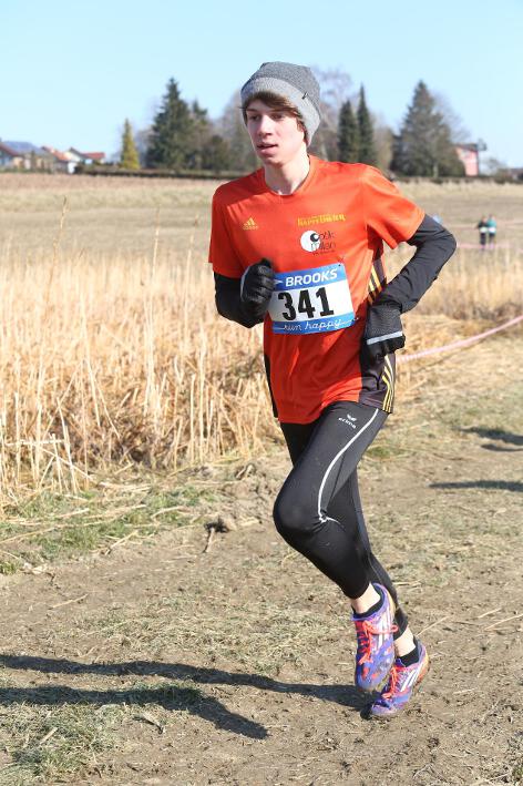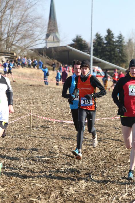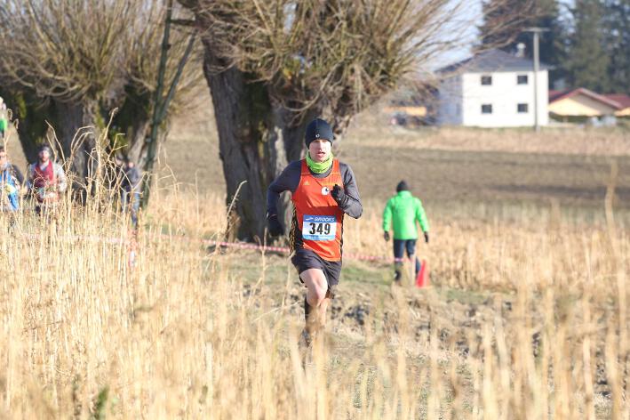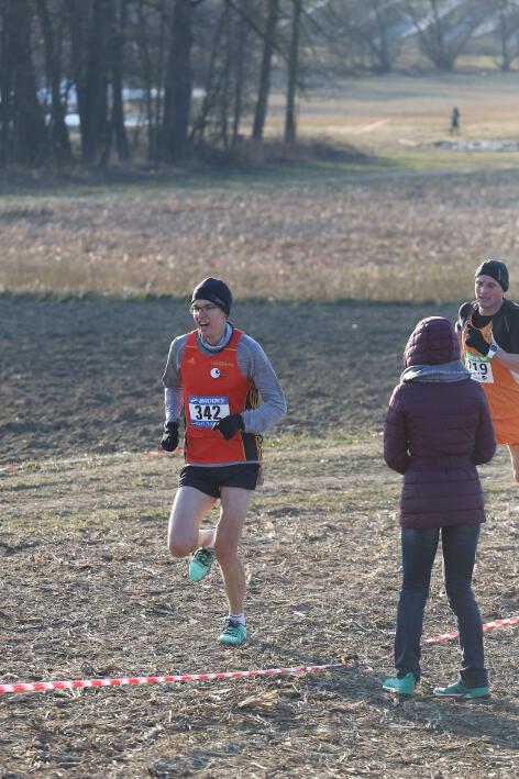 Deutlich mehr Erfahrung hat da schon Nick aufzuweisen, der sich aber mindestens genauso über seine Goldmedaille in der Altersklasse U20 freute wie seine Vereinskameradinnen. Mit nach oben gestreckten Armen überquerte er nach 10:50 Minuten und 3.600 Metern die Ziellinie auf dem gefrorenen Wiesenboden. In den ersten beiden von drei Runden hatte sich der 18-jährige Penzberger zunächst in einer fünfköpfigen Spitzengruppe etwas versteckt, übernahm dann aber zu Beginn der dritten Runde die Führung. Mit einer Tempoverschärfung sprengte er die Gruppe und konnte sofort zwei seiner Konkurrenten abschütteln. Auf dem leicht bergab führenden Weg durch einen halbgefroren Acker konnten ihm nur noch die beiden U23-Athleten Niklas Buchholz (LSC Höchstadt) und Gabriel Allgayer (LG Stadtwerke München) folgen. Am tiefsten Punkt der Strecke, wo der eisige Wind den Athleten kontinuierlich ins Gesicht blies, konnte er sich dann von Allgayer lösen, nur noch der deutsche 2.000m-Hindernismeister Buchholz hielt Kontakt. Am letzten kurzen Anstieg, knapp 100 Meter vor dem Ziel, zog dann Buchholz vorbei und erreichte wenige Meter vor Nick als Sieger der Altersklasse U23 das Ziel. Dies war ihm allerdings egal, schließlich hatte er alle seine Konkurrenten der U20 deutlich hinter sich gelassen. Nicht ganz so zufrieden war hingegen Lucas, der im selben Lauf lange Zeit nur 100 Meter hinter seinem Vereinskameraden lief, doch auf der letzten Runde ging dem 20-jährigen Penzberger die Kraft aus und er fiel noch deutlich zurück. So belegte er in der Altersklasse U23 mit 11:44 Minuten Rang 9. Ebenfalls im gleichen Lauf war Marvin am Start, der in der Altersklasse U18 eine ausgezeichnete Leistung zeigte und mit 12:29 Minuten Zwölfter wurde.