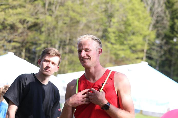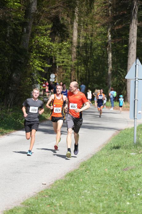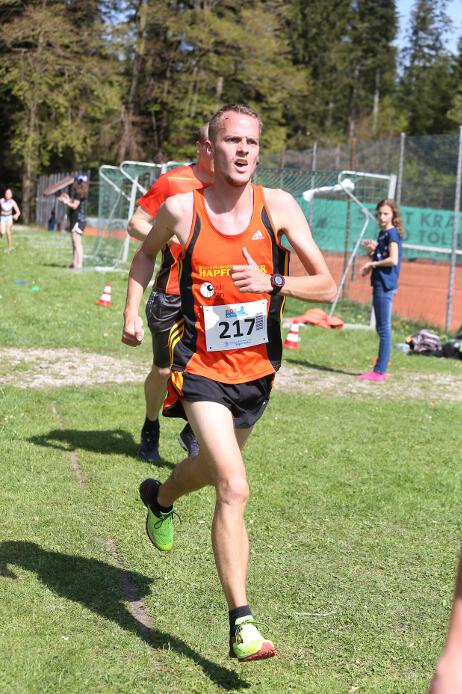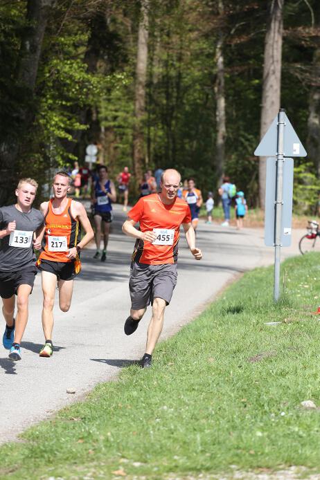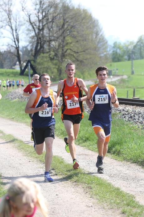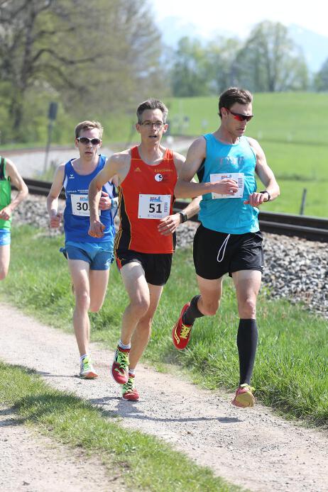 Noch geringer war der Rückstand auf den Sieg für Markus, der bis 400 Meter vor dem Ziel in Führung lag. Gegen den Schlussspurt von Christophe Chayriguet (SC Gaißach) hatte der 38-jährige Penzberger aber letztendlich keine Chance. "Als Christophe an mir vorbeigezogen ist, war ich bereits voll im Laktat und konnte nicht mehr kontern", so der Reallschullehrer. Nach knapp der Hälfte der Distanz, am längsten Anstieg des Kurses, hatte sich Markus zunächst aus der vierköpfigen Spitzengruppe gelöst und sich einen deutlichen Vorsprung erlaufen. Doch mit Beginn des 800 Meter langen, asphaltieren Teilstücks, das zum Ziel führte, spielte Christophe seine Reserven aus und schloss die 50 Meter große Lücke zu Markus. Wesentlich besser hatte sich da Andi das Rennen eingeteilt, der in der M20 mit 18:14 Minuten Zweiter wurde. "Der Lauf war gar nicht so hart wie ich gedacht hatte", so der Kommentar des 23-jährigen Sindelsdorfers. Lange Zeit im Windschatten von Andi lief Michi, der aber genauso wie Markus mit den Pollen zu kämpfen hatte und im Wald noch deutlich zurückfiel und letztendlich nur Achter wurde. Zwischen beiden platzierte sich Stefan als Fünfter, der nach zwei Wochen Training langsam wieder zu alter Form zurückfindet.