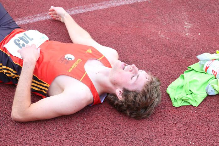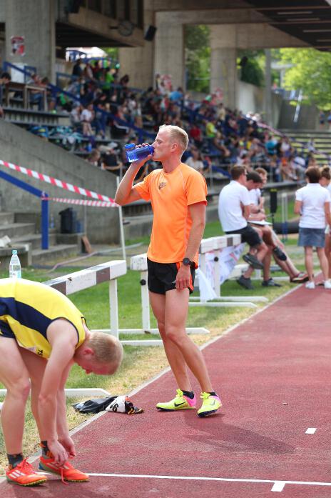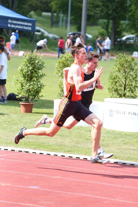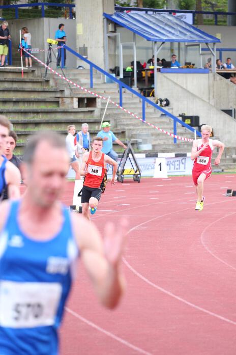 REGENSBURG / 13.05.2018 - Andi hat beim Rolf Watter Sportfest in Regensburg mit neuer persönliche Bestzeit die 800 m gewonnen. Mit 1:54,47 Minuten düpierte er das versammelte Feld der bayerischen Spitzenläufer und durfte als Belohnung den Rolf Watter – Pokal entgegennehmen, der dem Sportfest seinen Namen verleiht. Nach der ersten von zwei Runden lag der 23-jährige Sindelsdorfer noch auf dem sechsten Rang, doch 100 Meter später hatte er schon die Führung übernommen. „Eigentlich wollte ich nur ein paar Positionen gut machen. Aber während des Überholvorgangs dachte ich mir, dass ich eigentlich gleich ganz nach vorne laufen könnte“, so Andi zur rennentscheidenden Situation. Durch die Tempoverschärfung hatte er in Windeseile fünf Meter Vorsprung. Zu Beginn der Zielgerade setzte sich dann der Tscheche Jiri Gregor neben ihn. „Durch den starken Gegenwind wurden meine Beine dann richtig schwer, wobei ich nicht gedacht hätte, dass ich noch einmal kontern könnte.“ Dass seine Beine schwer wurden, war allerdings von außen nicht zu erkennen, denn der Penzberger Läufer konnte auf den letzten 100 Metern wieder einen deutlichen Vorsprung auf den Rest des Feldes herauslaufen. Im Ziel reckte er dann den linken Arm nach oben und freute sich über den Sieg und den neuen Vereinsrekord.
