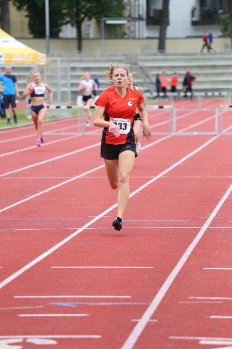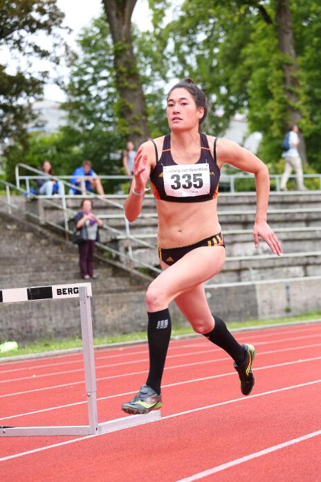 Nachdem also zunächst Colin mit Sharons Spikes gelaufen war, schlüpfte die 26-jährige Lenggrieserin in diese und zeigte mit 63,76 Sekunden, dass ihre Formkurve weiterhin steil nach oben zeigt. Die Lenggrieserin zeigte bis zur achten Hürde ein tolles Rennen und lag bis dahin sogar noch auf Kurs DM-Quali (62,40 Sekunden). "Vor der achten Hürde habe ich tippeln müssen. Da habe ich extrem viel Geschwindigkeit verloren, weshalb das Rennen an dieser Stelle eigentlich gelaufen war", so Sharon. Auch vor der zehnten Hürde musste sie noch einmal deutlich bremsen. Trotzdem steigerte sie ihre Saisonbestleistung um fast zwei Sekunden und belegte in München den 4. Platz